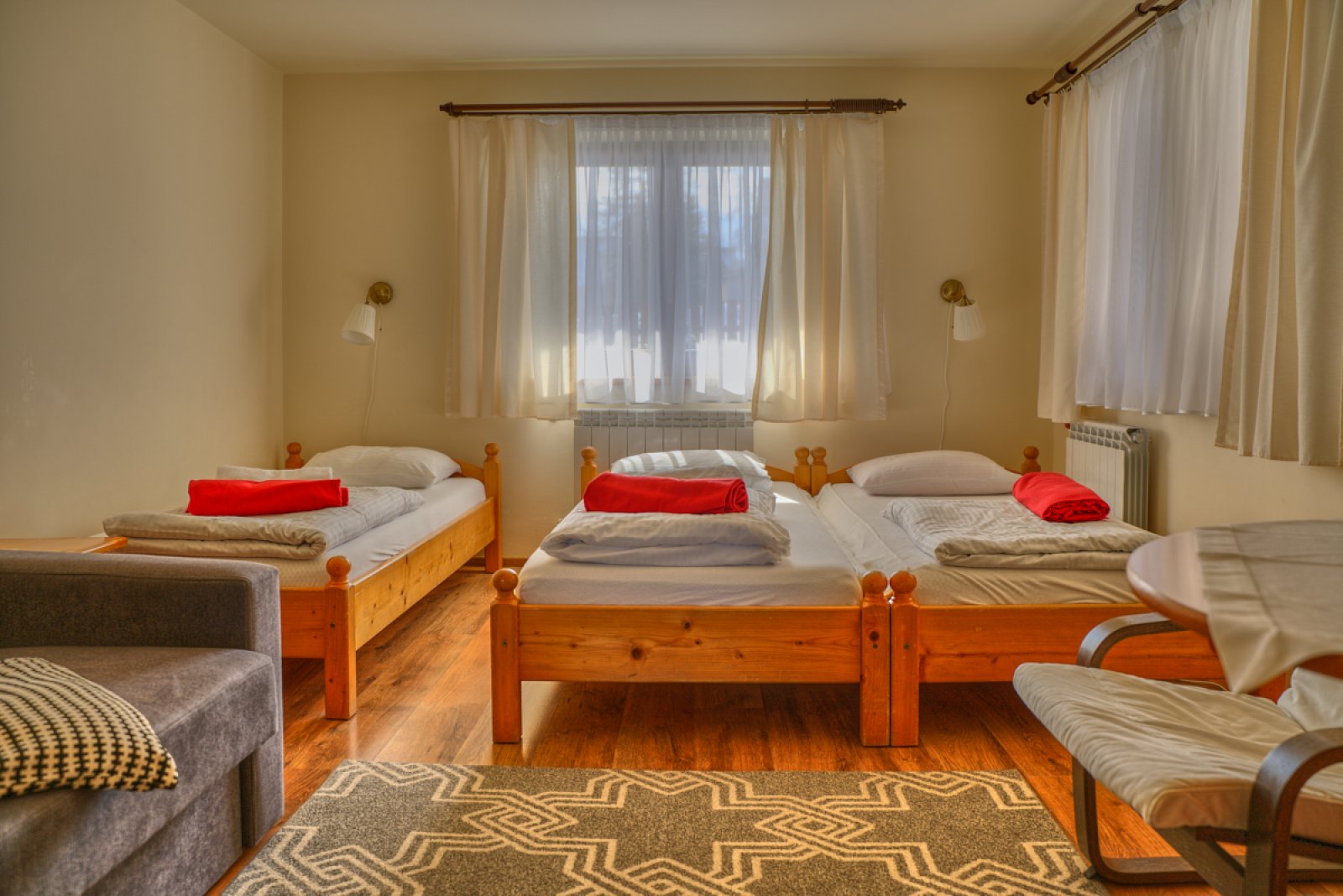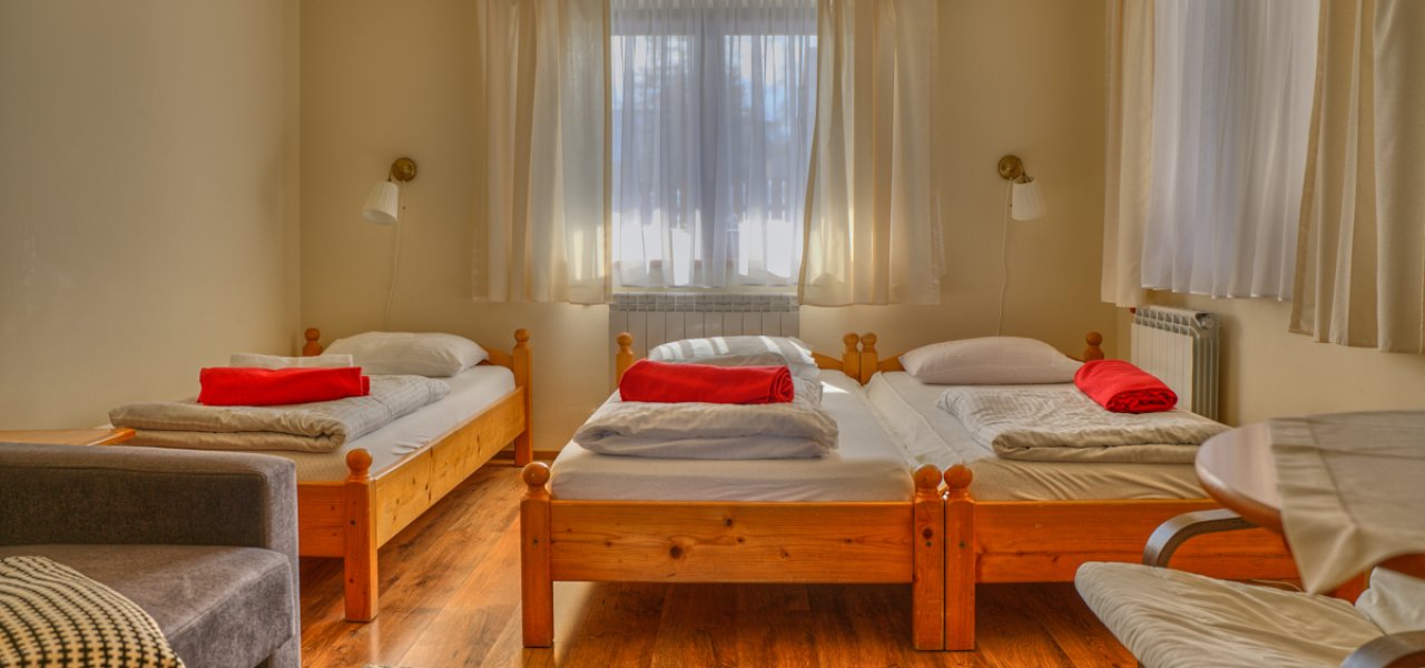 3 łóżka pojedyncze i 1 rozkładana sofa